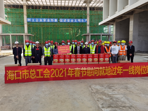 2月13日,市总工会副主席林小玉一行到����� �������Ƴ������������ �������Ƴ������市委党校新校区项目慰问一线工人